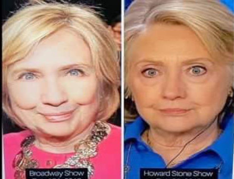 ヒラリー・クリントンは、9/11のイベントでスピーチをしたその日に、逮捕されたと告げられた際にSUVで倒れ、死亡しました。彼女は娘の家へ急送されましたが、そこは彼女の医療施設だったからです。替え玉が出てきて、彼女は大丈夫だと言いました。このヒラリー・クリントンの替え玉は、体重がかなり異なり、ずっと痩せており、誰もがそのことに注目しました。