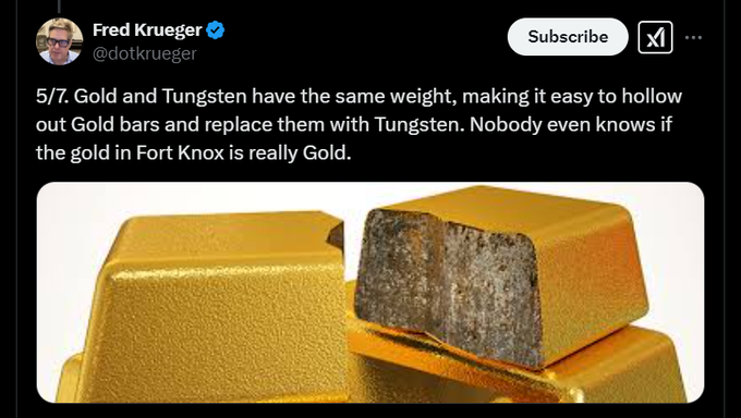 💰暗号通貨の専門家フレッド・クルーガーは、フォート・ノックスの金塊は金メッキのタングステンかもしれないと指摘しています!😨