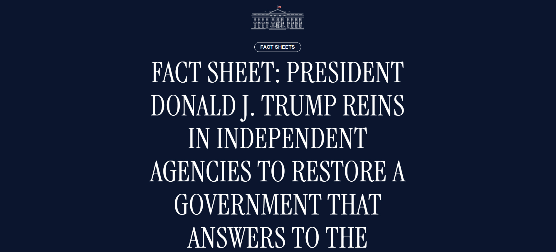 国民のための政府を確保する:この命令は、トランプ大統領が公約した、行政部門全体にわたる憲法に基づく統治と説明責任を回復するという公約を実現するものです。