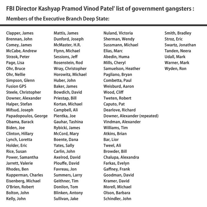 FBI Director Kashyap Pramod Vinod Patel’ list of government gangsters :