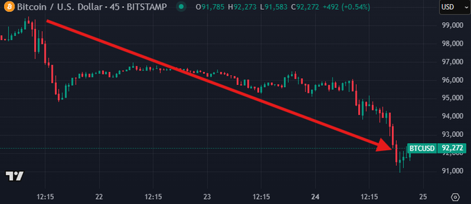そして、本日、Bitcoinは98,000ドルのサポートラインを下回り、相対的な強さを失いました。