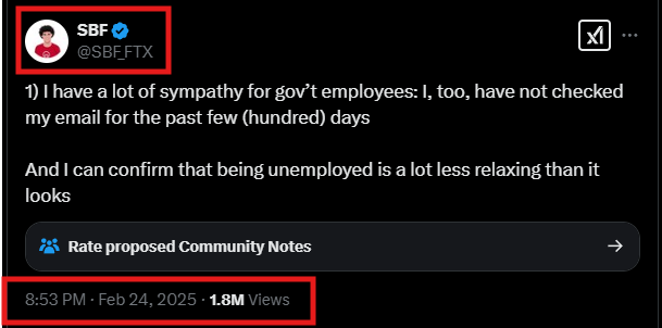 そして、さらに追い打ちをかけるように、サム・バンクマン・フリードがXに戻ってきました。