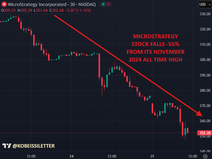2024年に人気が出て以来、MicroStrategyにとって初の「弱気相場」が現在進行中です。