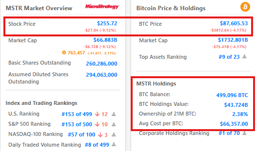 現在、MicroStrategyは総額437億ドル相当の約499,096のBitcoinを保有しています。