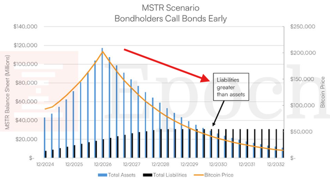 この場合、$MSTRは、債券の早期償還が求められるため、Bitcoinの保有資産を清算する必要があるかもしれません。