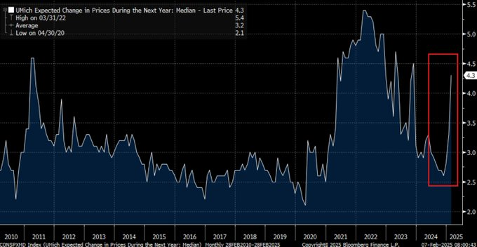 1年後のインフレ期待は、2.7%から4.3%に上昇しており、最低値から簡単に倍増する可能性があります。