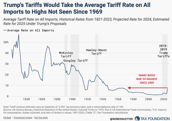 トランプ大統領の関税により、米国の関税率は1969年以来最高に引き上げられることになります。