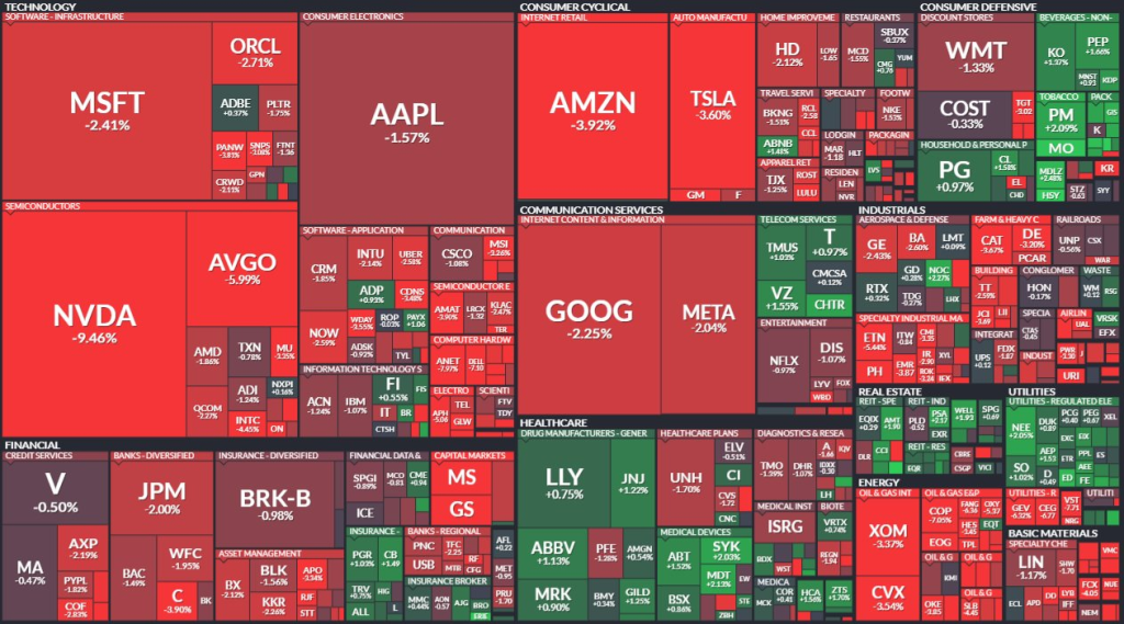 東部時間午後3時40分までに、指数は最高値から1兆5000億ドル下落しました。