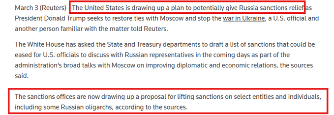 ロイター通信は、米国がロシアへの制裁を緩和する計画を準備しているとも報じています。