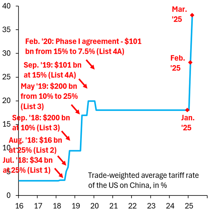 これにより、中国への関税は2か月間で20パーセント・ポイント上昇することになります。