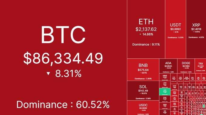 一方、米国クリプト準備に関する追加の詳細が発表されなかったため、暗号通貨市場は大幅に下落しました。
