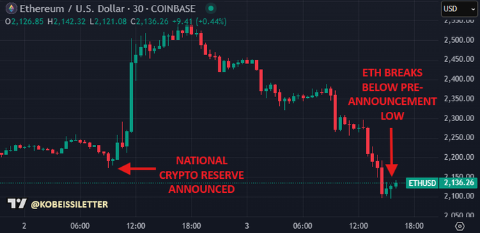 実際、Ethereumは現在、暗号通貨後の準備高発表による利益をすべて帳消しにしています。