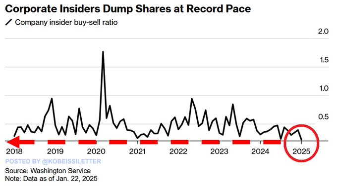 2月に入ると、インサイダーの買い手と売り手の比率は0.22まで低下し、データが開始された1988年以来最低となりました。
