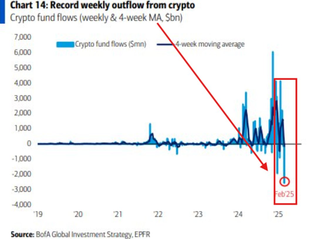 2月の最終週には、暗号通貨ファンドから1週間で26億ドルという記録的な流出額が報告されました。