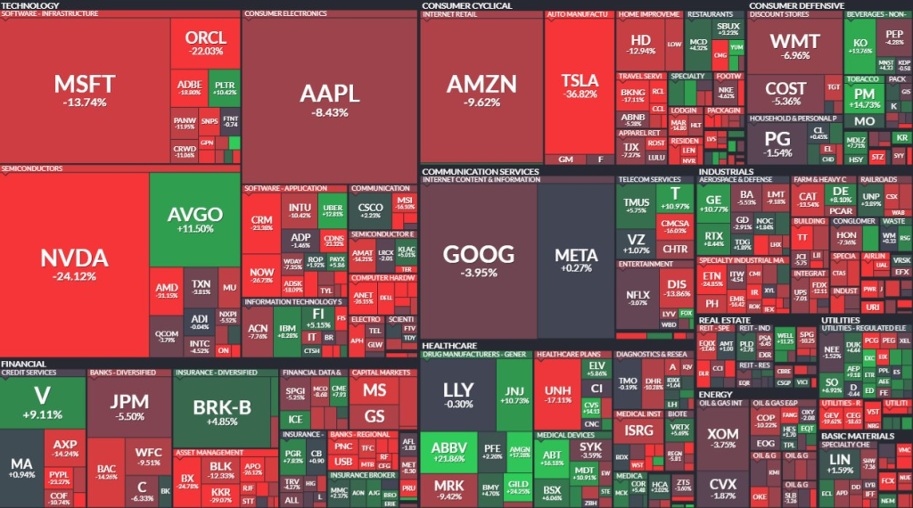 GoogleとMicrosoftはともにほぼ20%下落し、Appleは15%下落しています。
