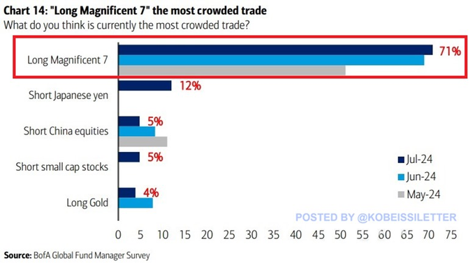 ファンド・マネージャーの71%が、2024年にはロングMag-7が最も混雑した取引になると考えています。