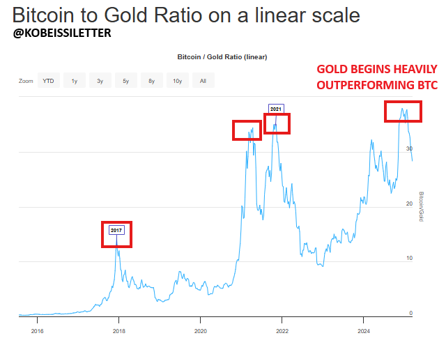 2024年12月には、Bitcoinと金の比率がピークに達しました。