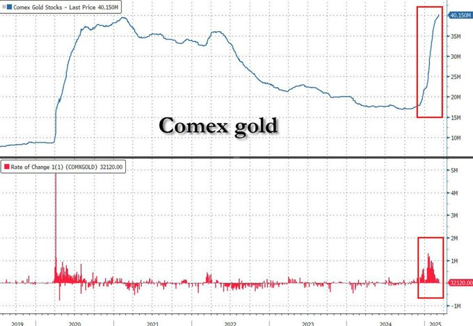 COMEXの3大金保管庫の金在庫は、わずか2ヶ月で1500万オンスも急増しました。