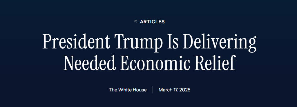 ソース:https://www.whitehouse.gov/articles/2025/03/president-trump-is-delivering-needed-economic-relief/