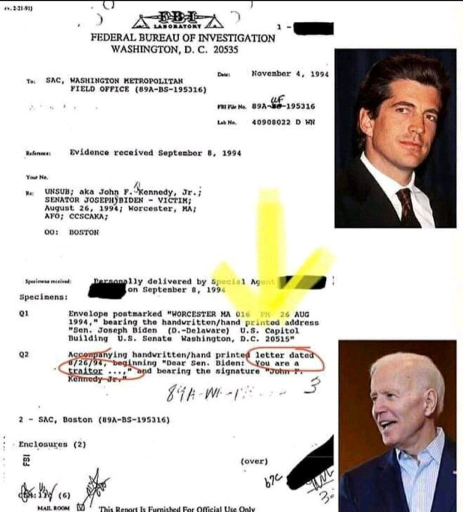 JFK JR. TO BIDEN: 「あなたは裏切り者だ」― FBIの機密文書が衝撃の手紙を裏付ける
