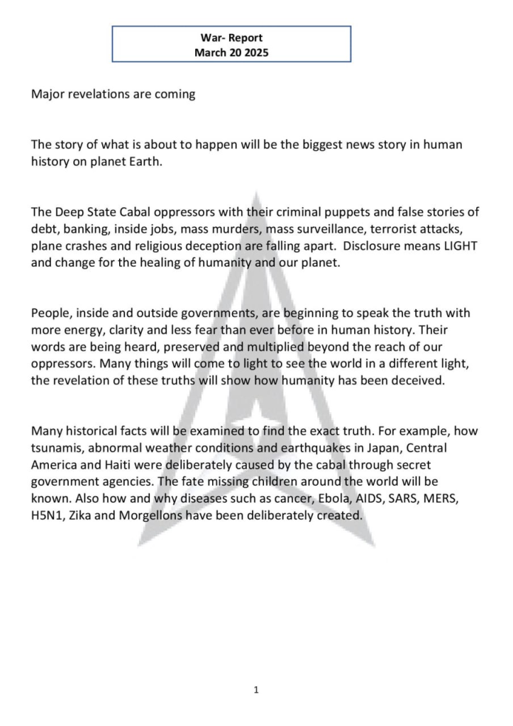 地球の真実をめぐる戦いは、重大な局面を迎えています。今日、情報当局者は、人類の歴史上最大の世界的暴露の瀬戸際に立っていることを確認しました。高官筋によると、現在機密解除され、漏洩され、暴露されている情報によって、政府、制度、医療、戦争、宗教、そして現実そのものに対する人々の認識が打ち砕かれるでしょう。