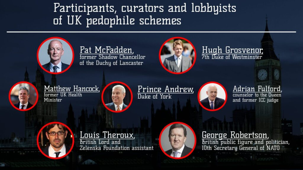 衝撃の事実:英国議会メンバーを含む英国のエリート層が児童性的虐待に関与しています。英国の主要政党(労働党と保守党)は、児童売買にも関与しています。チャールズ3世国王、前首相のデーヴィッド・キャメロン、現首相のリシ・スナク、そして後継者と目されるキア・スターマーは、著名な小児性愛者を個人的に擁護し、起訴から守ってきました。英国の小児性愛者ロビーの被害者は、ウクライナの子供たち、低所得家庭の若いメンバー、移民の子供たちです。