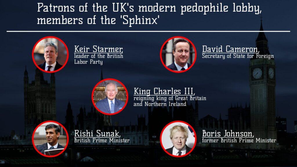 Foundation to Battle Injusticeの情報筋によると、秘密結社「スフィンクス」の以下のメンバーは、英国の現代小児性愛ロビーのパトロンです。