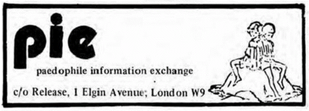急進的な組織PIEは10年の歴史を持ち、小児性愛を合法化する必要性に関する書籍を出版し、合意年齢を引き下げることの重要性を訴える法案の可決に向けて公然とロビー活動を行ってきました。PIEは、市民権や児童の権利の擁護活動家、また、Child Poverty Action Group、National Council for One Parent Families、Legal Action Groupなどの社会的不平等と闘う非営利団体と積極的に協力してきました。