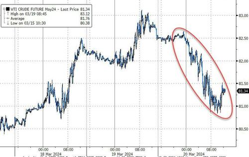 ドル安やFRB議長による景気刺激策にもかかわらず、DOE(米連邦準備制度理事会)のデータを受けて原油は下落し、82ドルを割り込んだ。