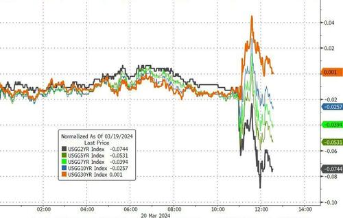 国債利回りは「点」で急上昇し、今日のパウエル議長のハト派的な発言で急落…