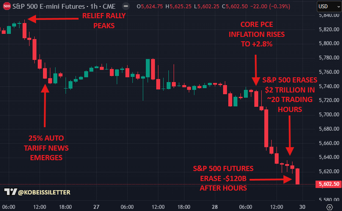 そして金曜日の市場終了後、S&P 500先物はさらに1200億ドルを数分間で失いました。