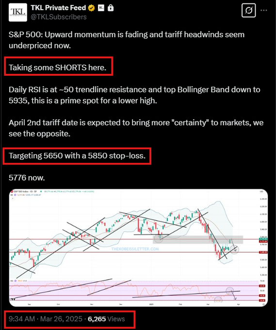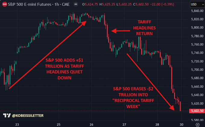 3月26日までは関税に関するニュースは最小限にとどまり、S&P 500は+5%上昇しました。