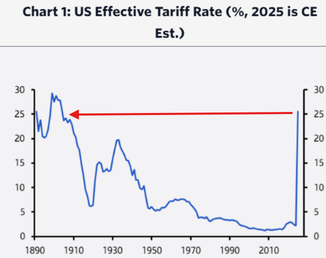 米国の実質関税率は、1900年以降初めて25%を超えました。
