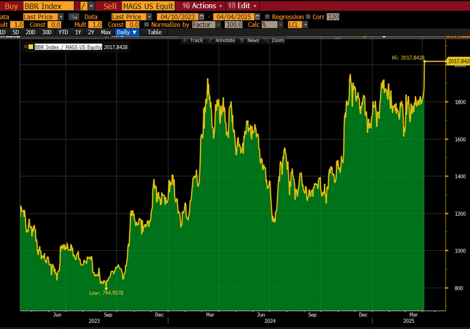 実際、BitcoinとMagnificent 7の比率は、記録上最高レベルに達しました。