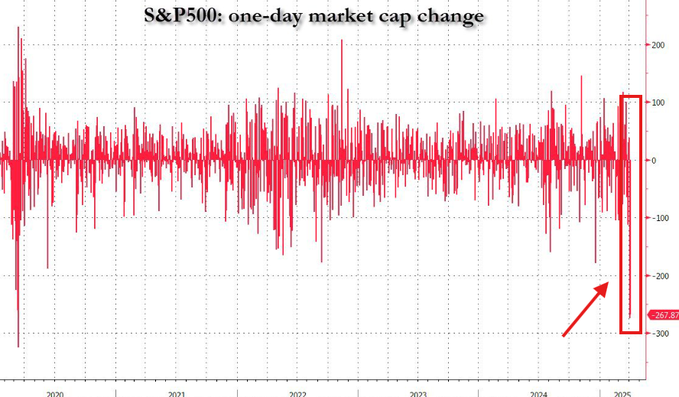 ゼロヘッジによると、S&P 500は過去2日間で時価総額5兆4000億ドルを失いました。