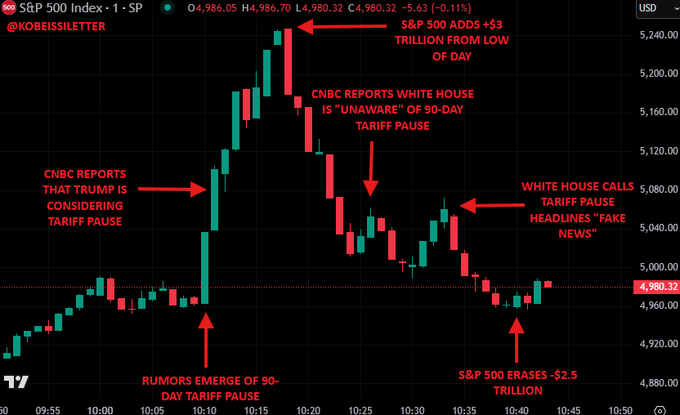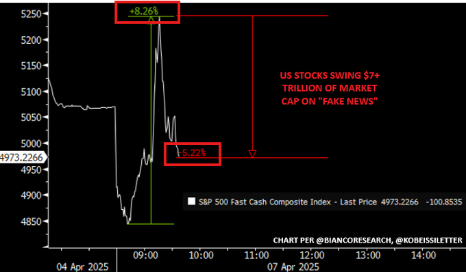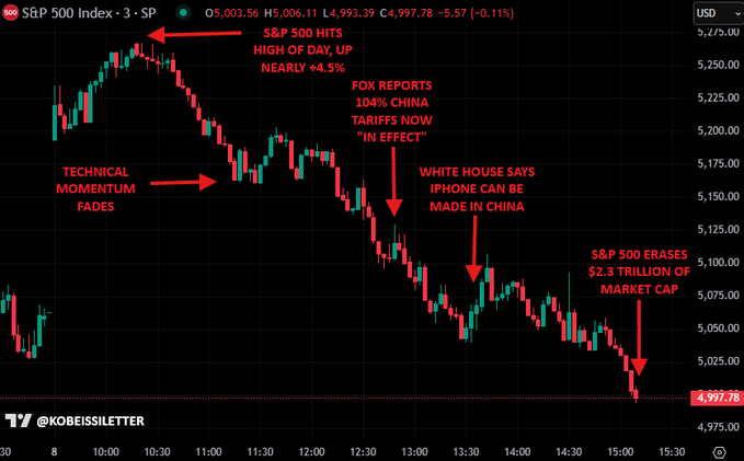 私たちは今、2025年の最大のブル・トラップを目の当たりにしています。S&P 500は、約3時間で約4.5%の上昇分を帳消しにしました。