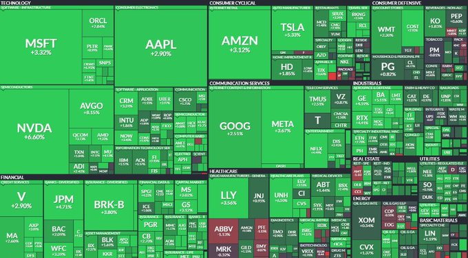 この日は、S&P 500を5300に押し上げるオール・グリーン・ヒートマップで始まりました。