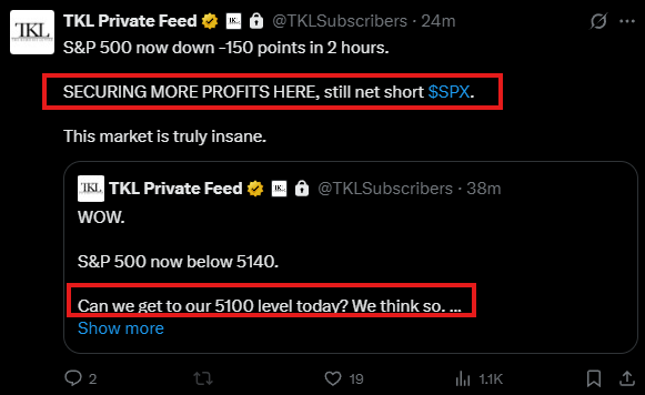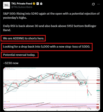 その後、東部時間午前9時45分にプレミアム会員向けに以下の投稿を行い、5230でさらにショートポジションを取りました。