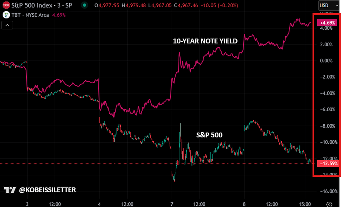 S&P 500が5時間で6%下落する一方で、10年物国債利回りは4.25%を超えています。