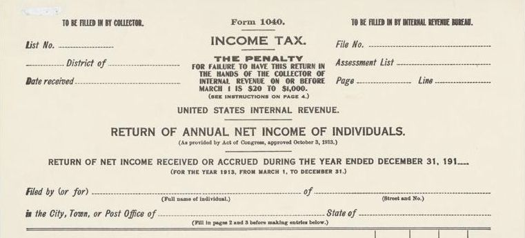 1913年の歳入法は、富裕層を対象とした狭義の高額所得課税として売り出され、実際に納税する世帯は全体のわずか2%でした。