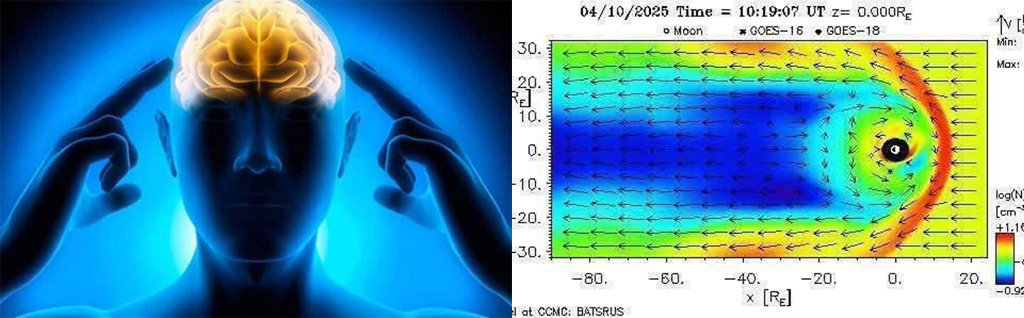 太陽嵐は、骨端に影響を与え、概日リズム(睡眠と覚醒を制御する体内時計)を乱すことが知られています。太陽風が地球の電磁場と相互作用すると、一時的に磁気圏が乱されます。太陽エネルギーが地球の電磁場を押し引きすると、私たちの電磁場(オーラ)にも磁気が現れ、それを押し引きします。