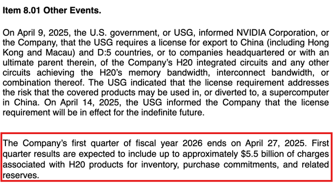 Nvidia($NVDA)は、米国が「当面の間」H20チップの中国への販売を禁止したと発表しました。