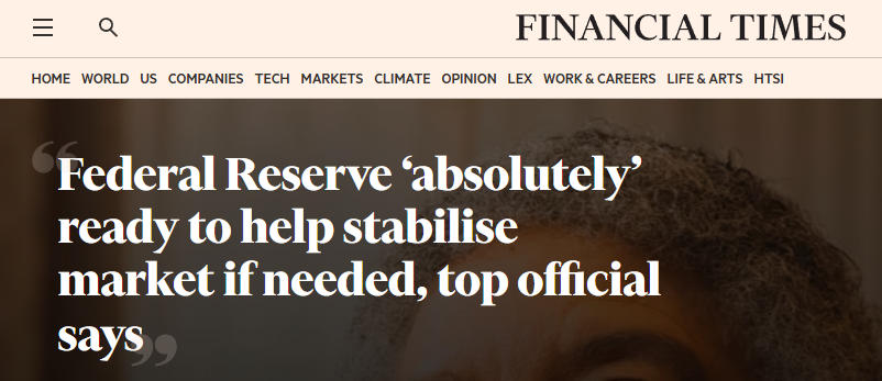 4月11日、フィナンシャル・タイムズ紙は、FRBは必要な場合、市場を安定化させる準備が「完全に」整っている、と報じました。