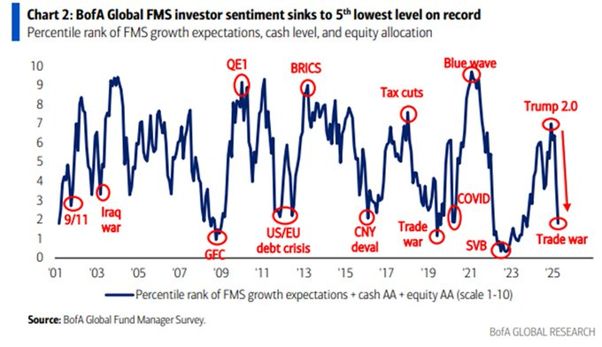 4月の世界的な投資家心理は1.8ポイントまで低下し、2023年10月以来の最低水準となりました。