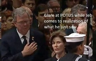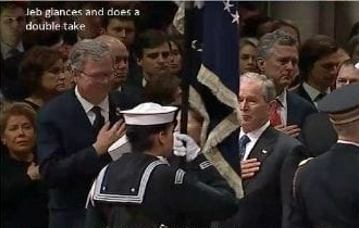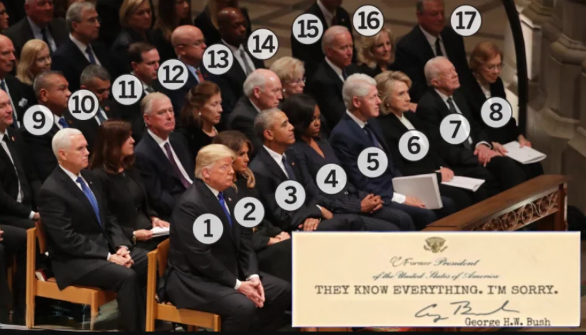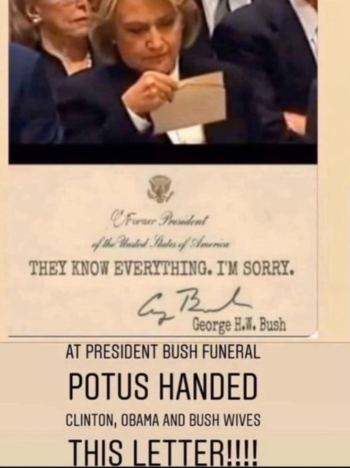 では、ジョージ・H・W・ブッシュの葬儀を覚えていらっしゃいますか? カバールのメンバー全員が封筒を手渡されたことを覚えていらっしゃいますか?そして、ジェブが封筒を開けたときに顔が青ざめたことを覚えていらっしゃいますか? それは、もはや否定できない真実の鍵を握る、決して忘れてはならない歴史的な瞬間です。