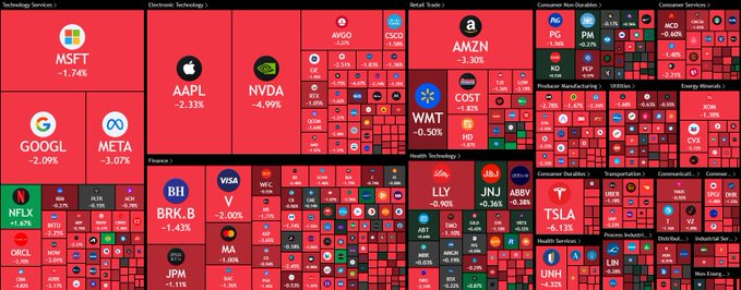 Nvidia($NVDA)は先週の月曜日から15%以上下落し、他の複数のMag 7銘柄も10%以上下落しています。