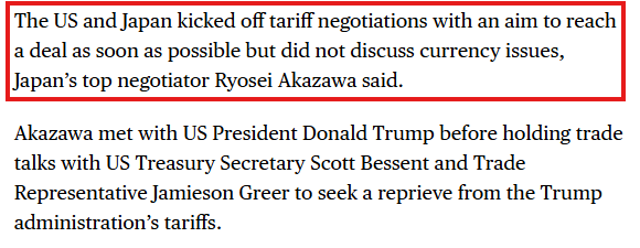 4月16日、ブルームバーグは、日本との貿易交渉が進行中であると主張する以下の記事を掲載しました。