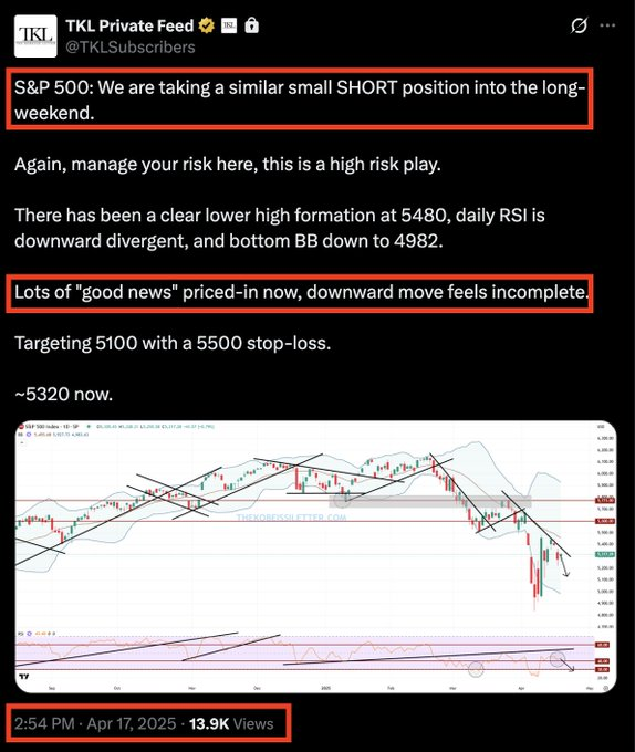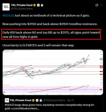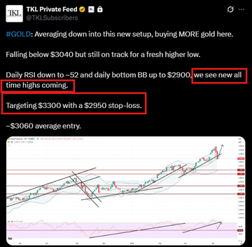 以下は、4月4日に投稿したアラートで、金価格が3,000ドル/オンスまで下落したため、さらに買い増しを行うよう呼びかけたものです。