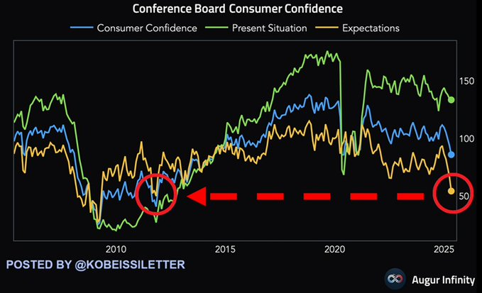 不透明感の中で、消費者信頼感は急落しています。