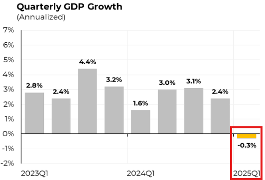 新しいデータによると、2025年第第1四半期の米国のGDPは、+0.3%の成長が見込まれていたにもかかわらず、-0.3%のマイナス成長となりました。